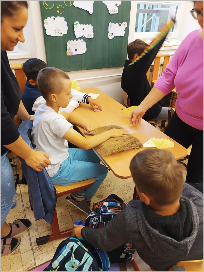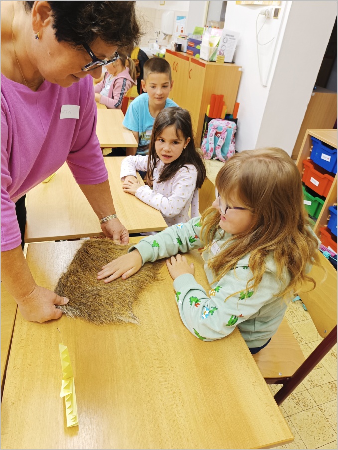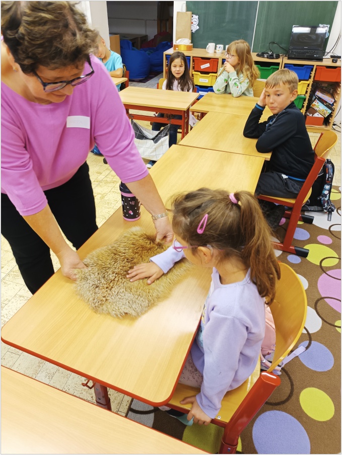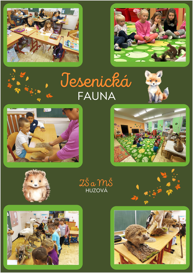 Děti z MŠ i ZŠ se ve čtvrtek zapojily do projektu Jesenická fauna, kde se seznámily se zvířaty, která se běžně vyskytují v našem okolí. Měly možnost si pohladit srst některých zvířat, například lišky nebo divokého prasete. Velkým zážitkem bylo i osahání ježkových bodlinek. Děti si také poslechly typické zvuky zvířat, jako je volání veverky, bubnování datla či klapání čápa. Celý projekt byl pro děti nejen zábavný, ale i velmi poučný. Domů si odnášejí spoustu nových vědomostí a zajímavých zážitků.