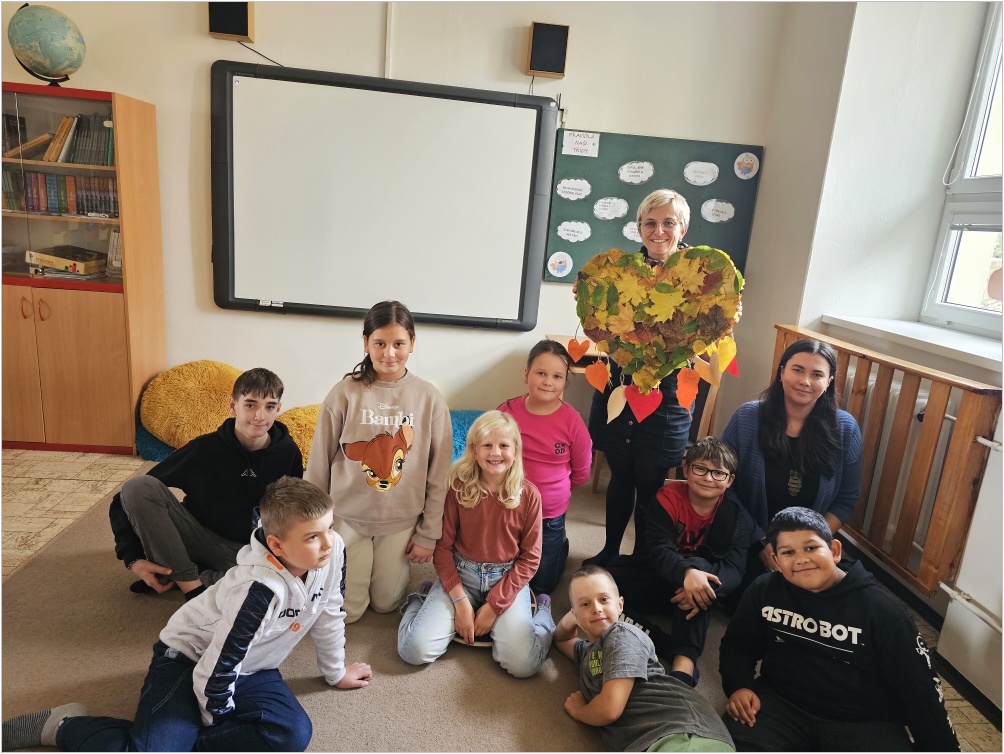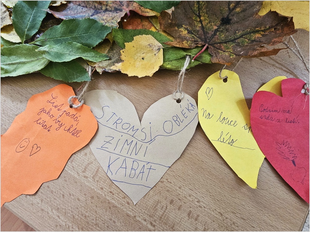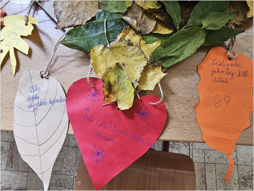 Pozorovali jsme přírodu, sbírali listy, psali o podzimu a nakonec vytvořili velké srdce z listí, které jsme ozdobili svými myšlenkami.