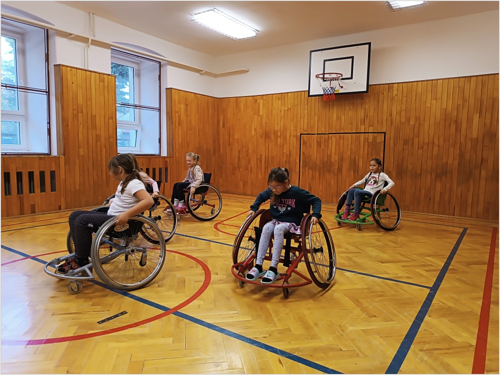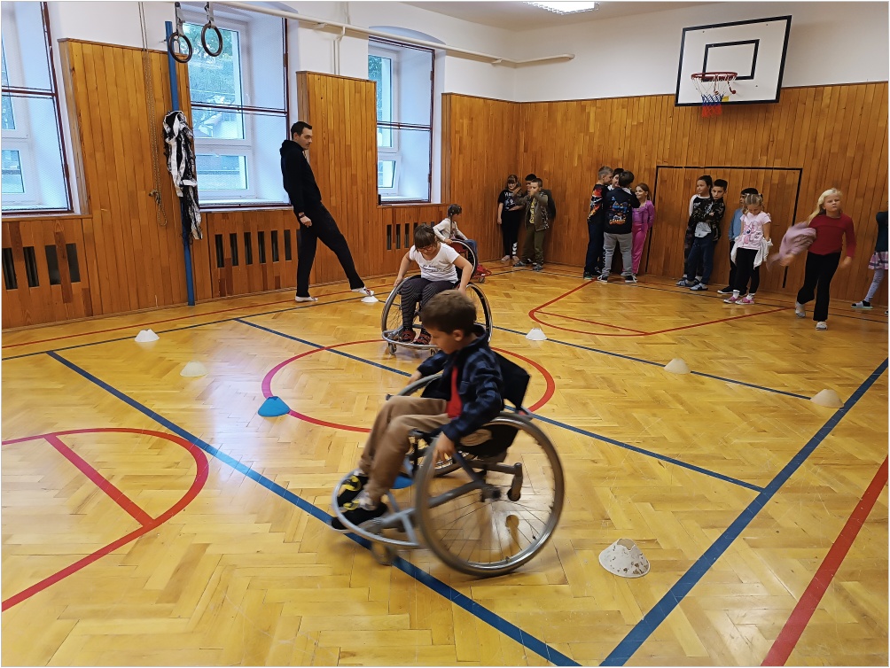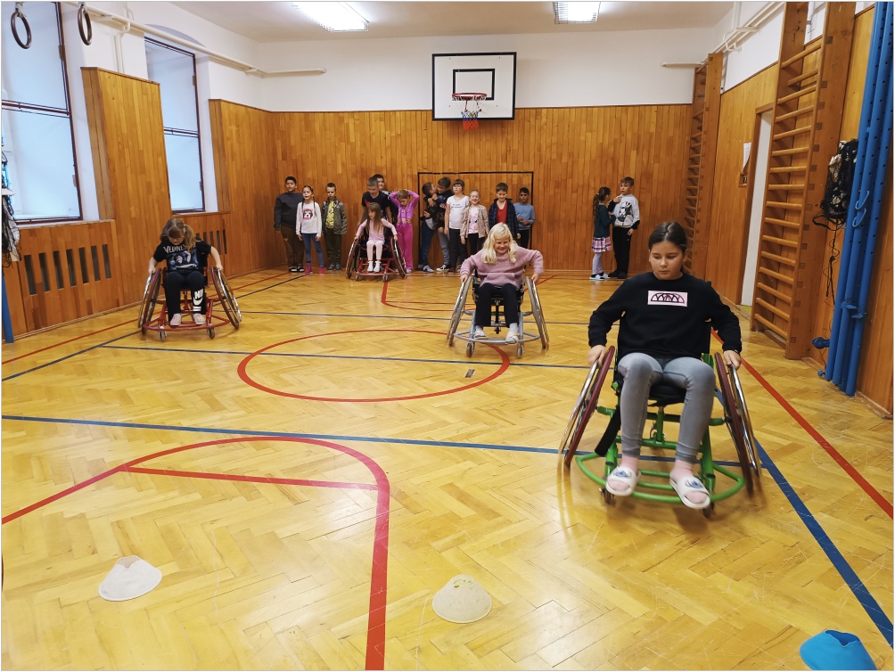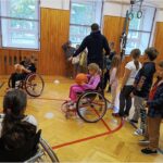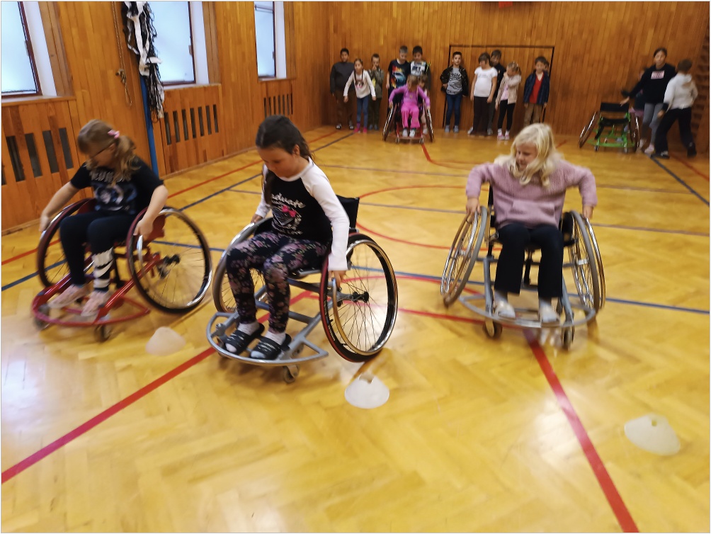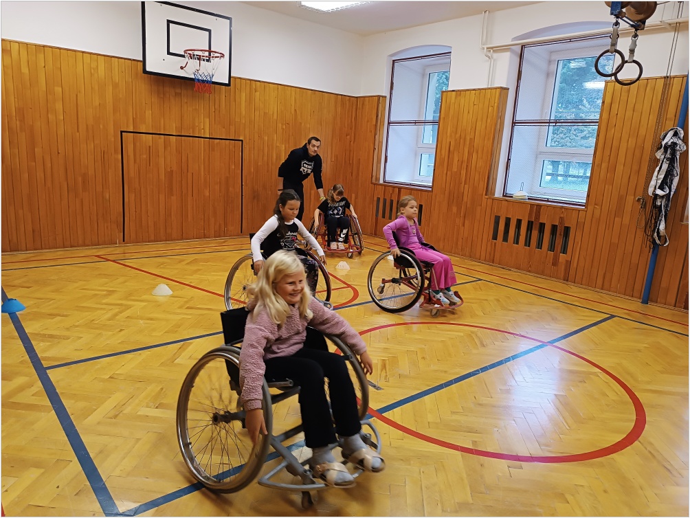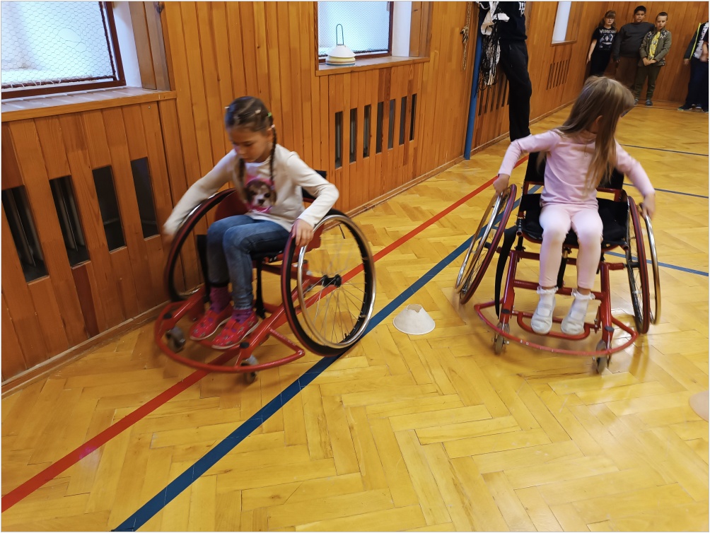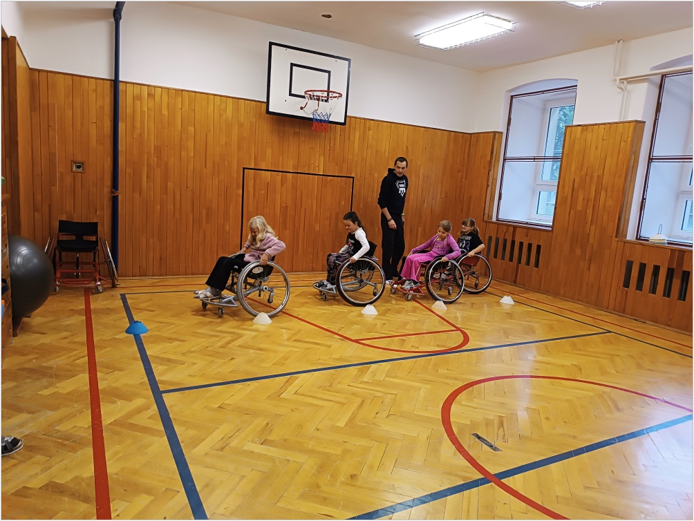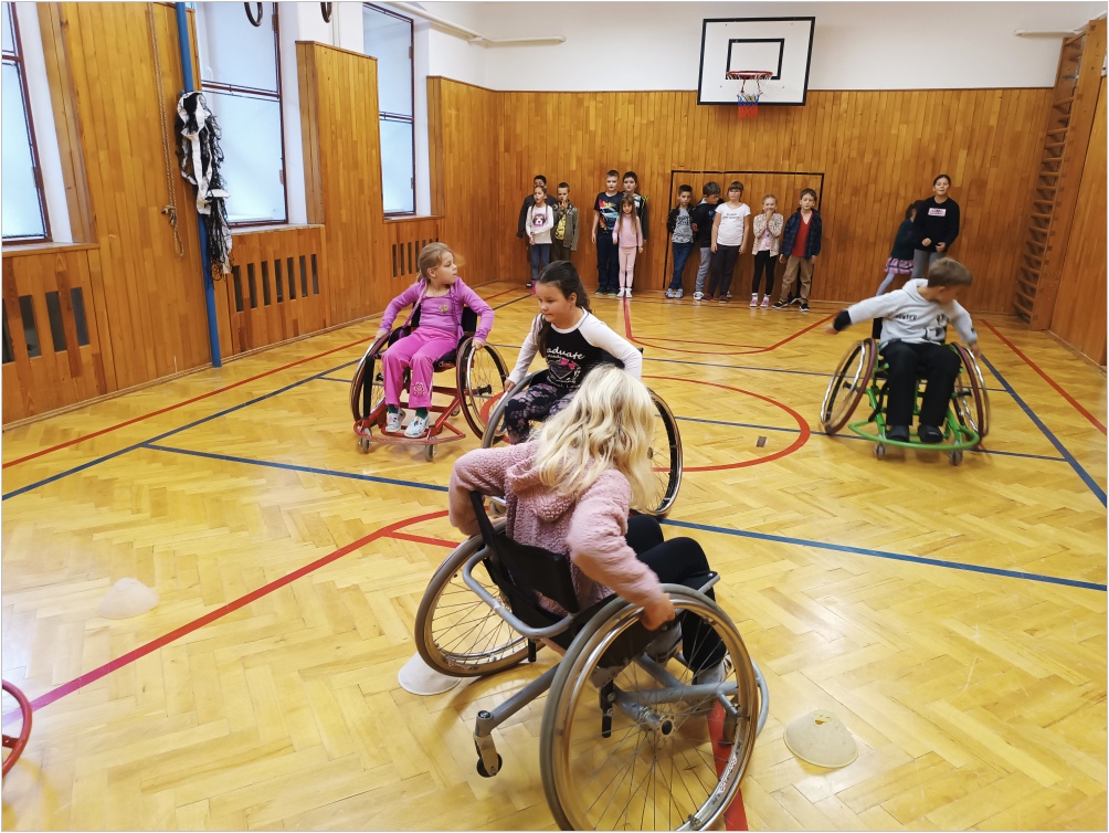 V pondělí nás v MŠ i ZŠ navštívili zástupci z Univerzity Palackého v Olomouci. Žáci základní školy se seznámili s kompenzačními pomůckami, vyzkoušeli si pohyb na vozíčku a dokonce si zahráli basketbal na vozíku. Děti z mateřské školy si procvičily jemnou motoriku při navlékání korálků a zároveň i své hlavičky při počítání a třídění barevných zvířátek do správných mističek. Obě skupiny si dopoledne plné nových zážitků a her velmi užily.