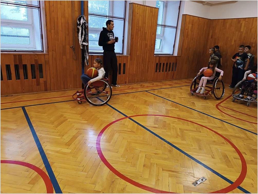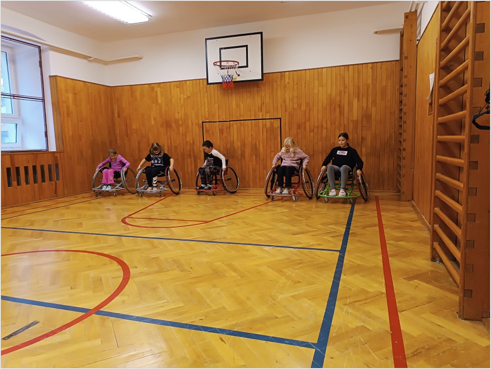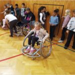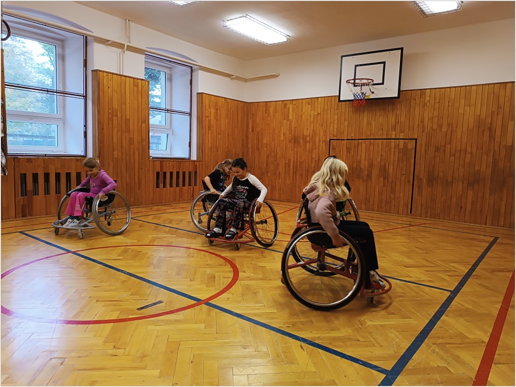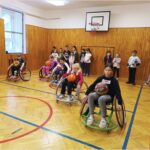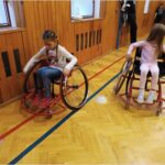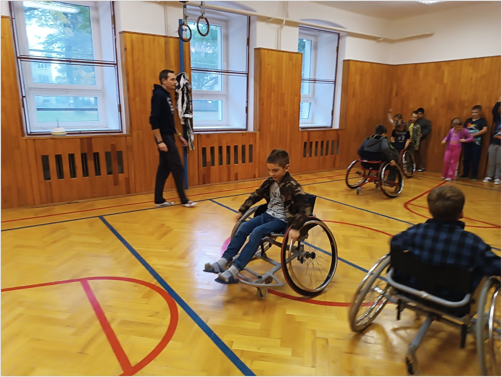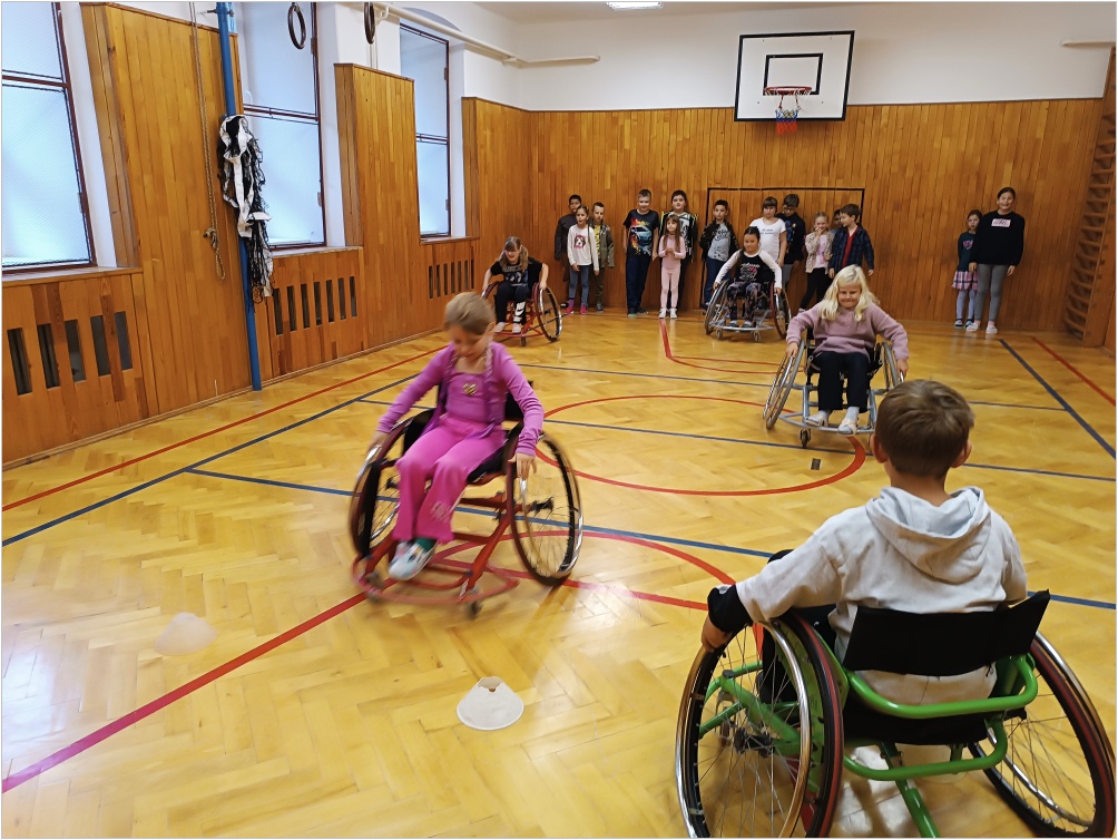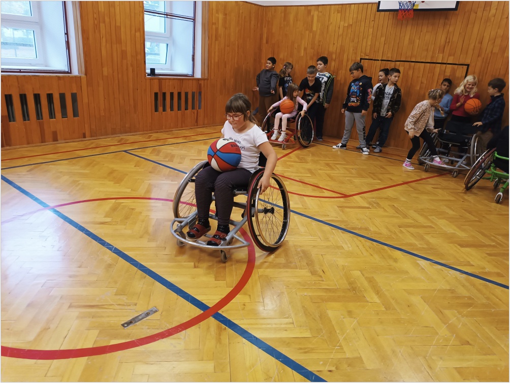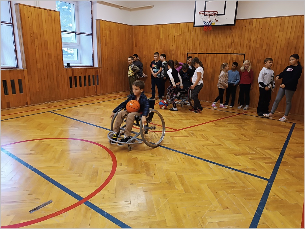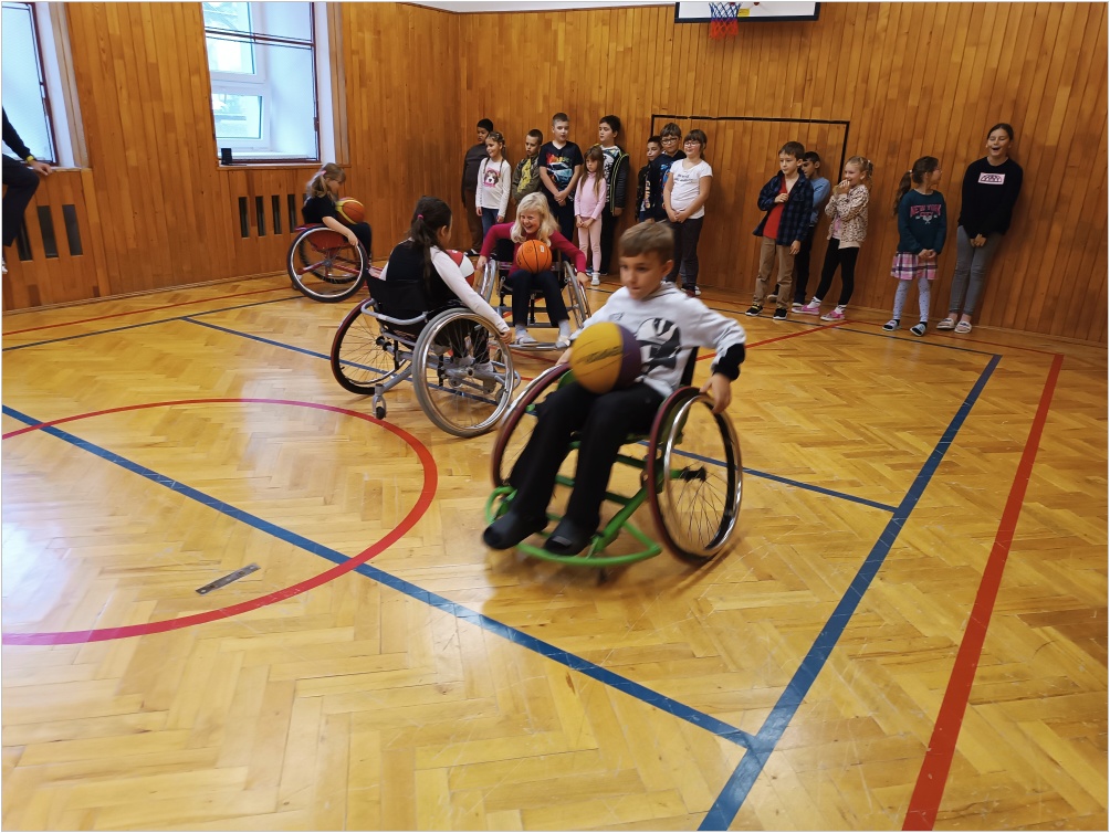 V pondělí nás v MŠ i ZŠ navštívili zástupci z Univerzity Palackého v Olomouci. Žáci základní školy se seznámili s kompenzačními pomůckami, vyzkoušeli si pohyb na vozíčku a dokonce si zahráli basketbal na vozíku. Děti z mateřské školy si procvičily jemnou motoriku při navlékání korálků a zároveň i své hlavičky při počítání a třídění barevných zvířátek do správných mističek. Obě skupiny si dopoledne plné nových zážitků a her velmi užily.