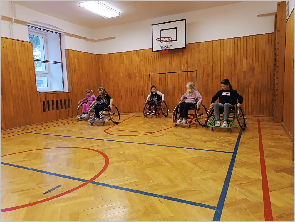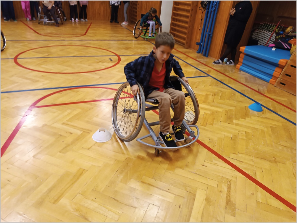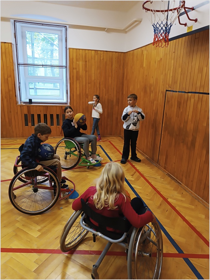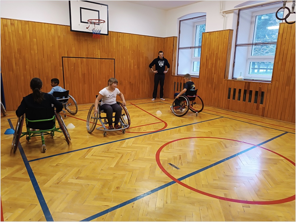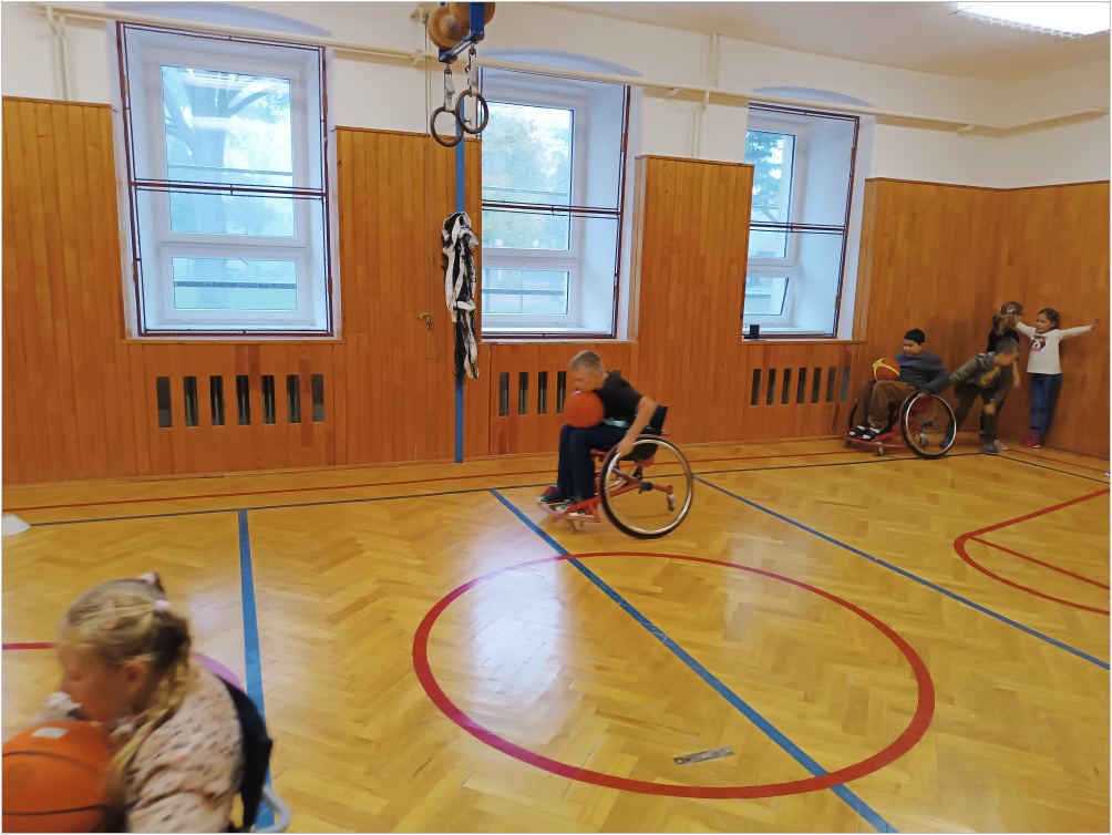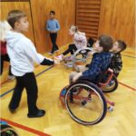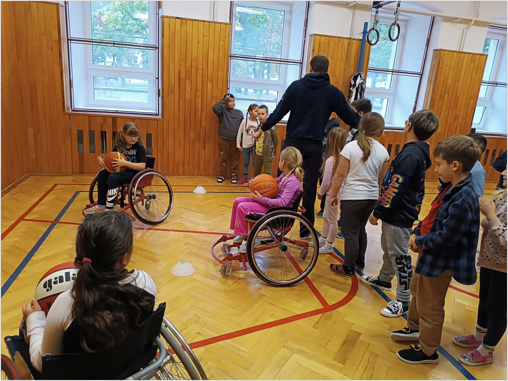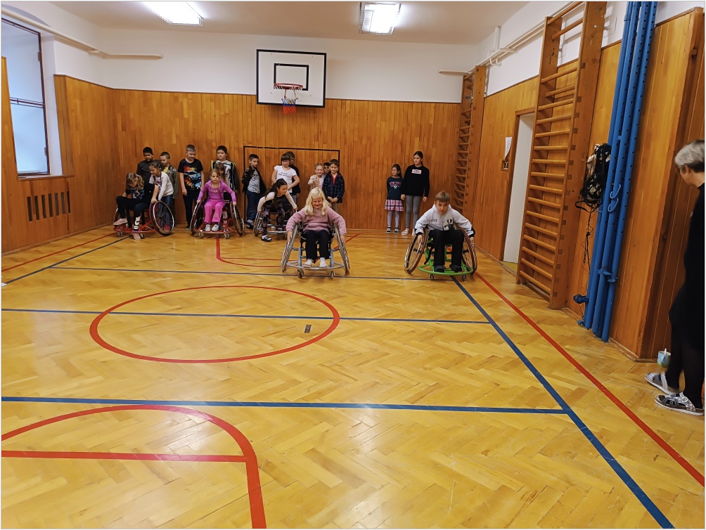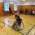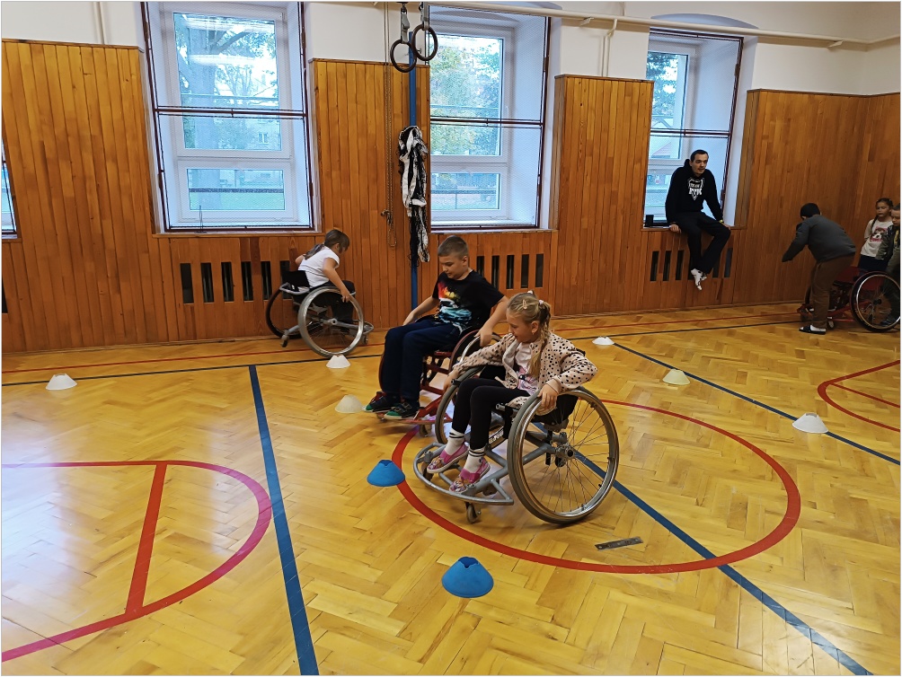 V pondělí nás v MŠ i ZŠ navštívili zástupci z Univerzity Palackého v Olomouci. Žáci základní školy se seznámili s kompenzačními pomůckami, vyzkoušeli si pohyb na vozíčku a dokonce si zahráli basketbal na vozíku. Děti z mateřské školy si procvičily jemnou motoriku při navlékání korálků a zároveň i své hlavičky při počítání a třídění barevných zvířátek do správných mističek. Obě skupiny si dopoledne plné nových zážitků a her velmi užily.