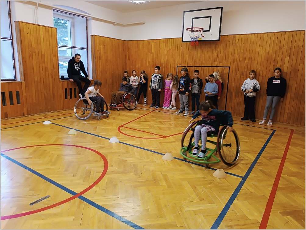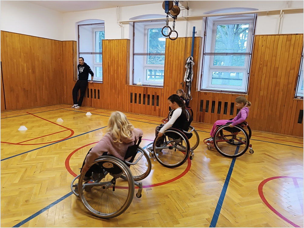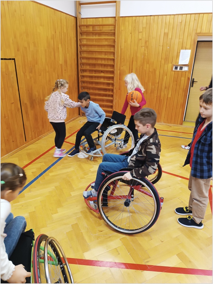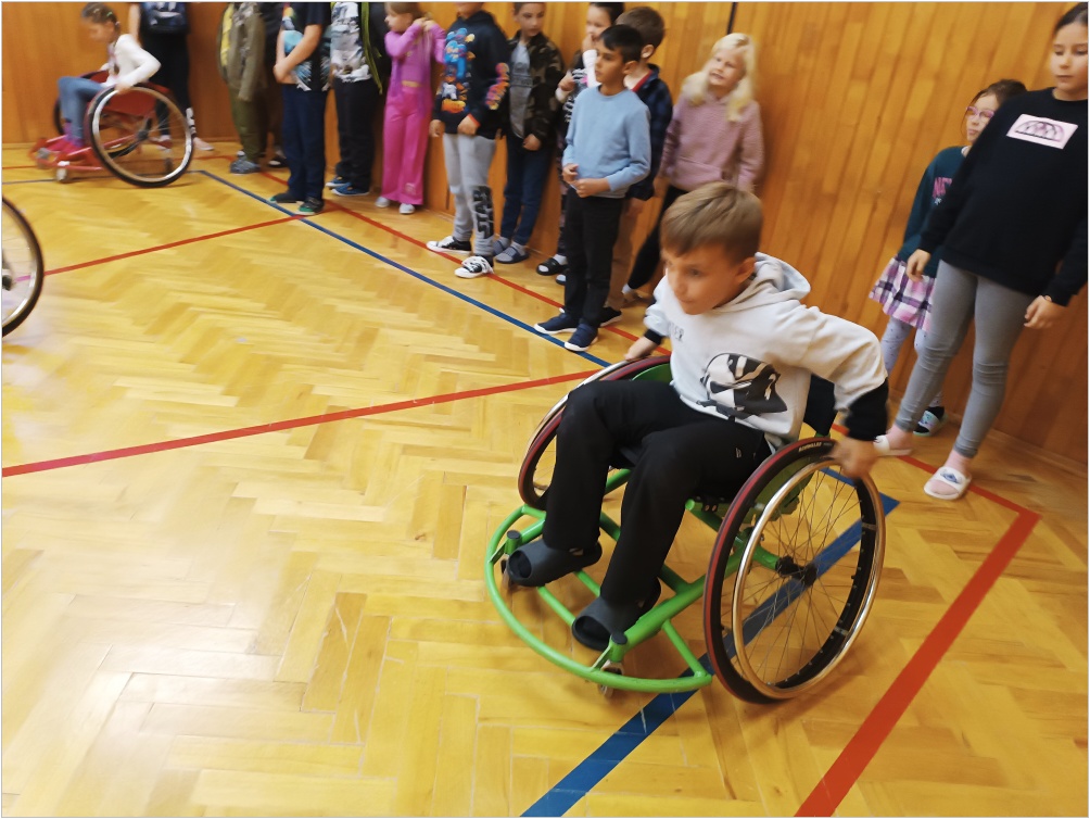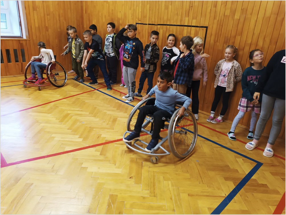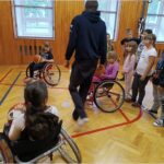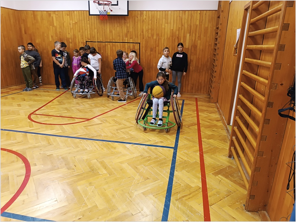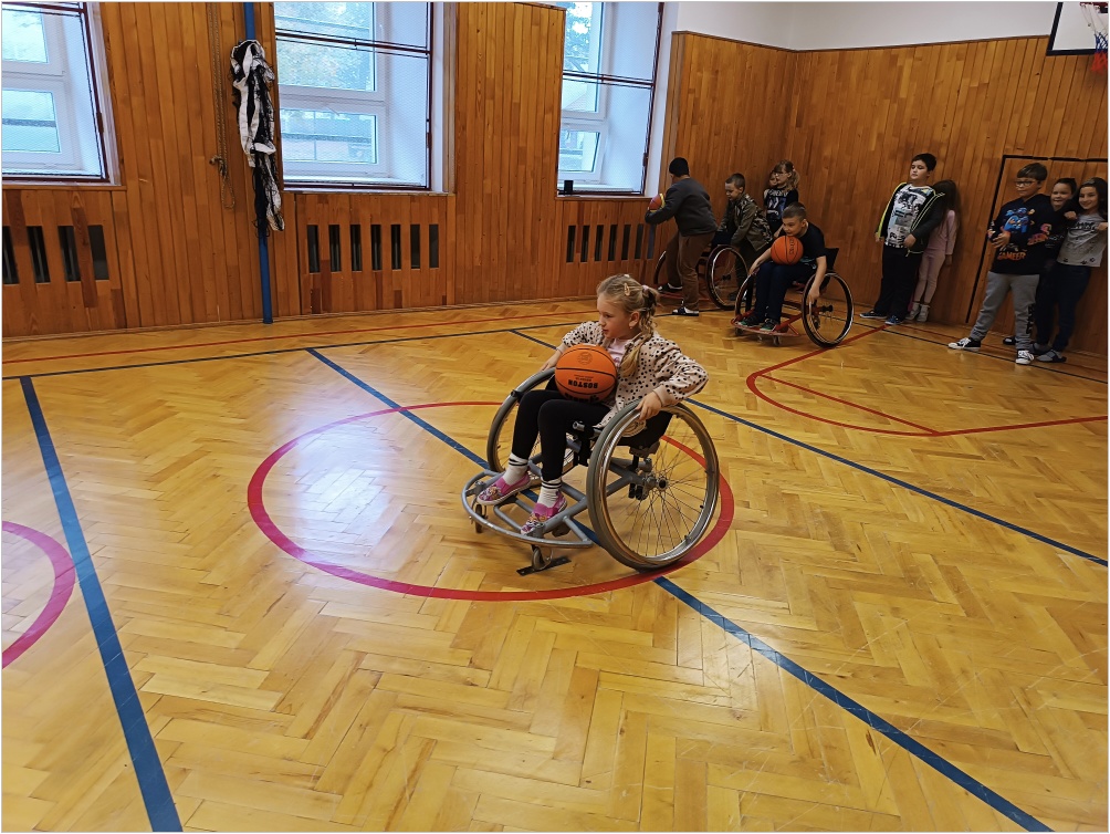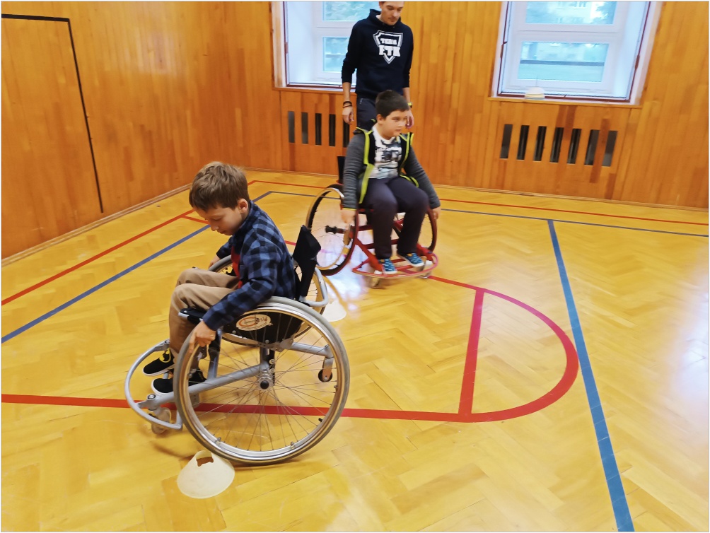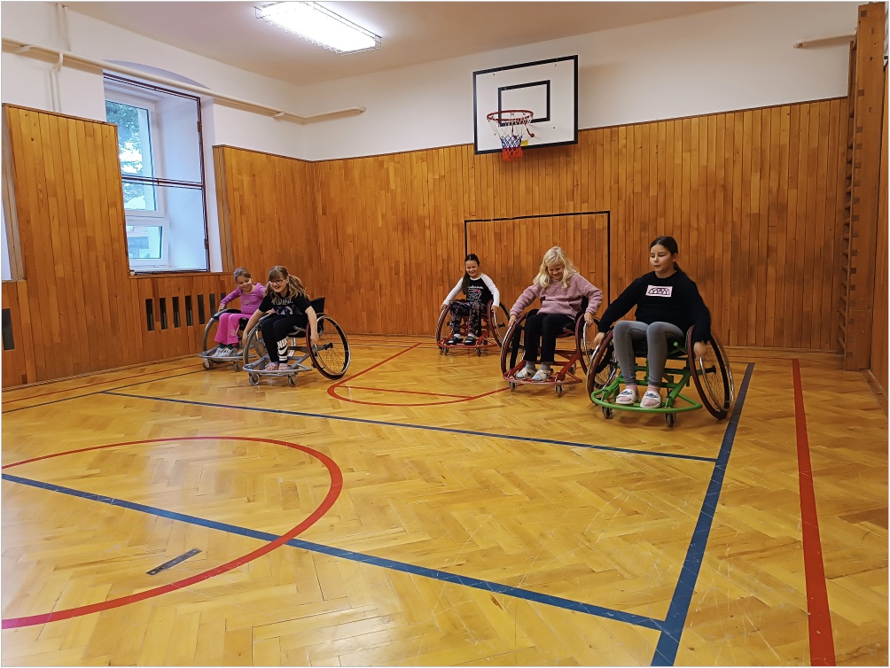 V pondělí nás v MŠ i ZŠ navštívili zástupci z Univerzity Palackého v Olomouci. Žáci základní školy se seznámili s kompenzačními pomůckami, vyzkoušeli si pohyb na vozíčku a dokonce si zahráli basketbal na vozíku. Děti z mateřské školy si procvičily jemnou motoriku při navlékání korálků a zároveň i své hlavičky při počítání a třídění barevných zvířátek do správných mističek. Obě skupiny si dopoledne plné nových zážitků a her velmi užily.