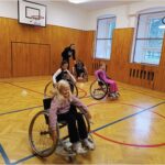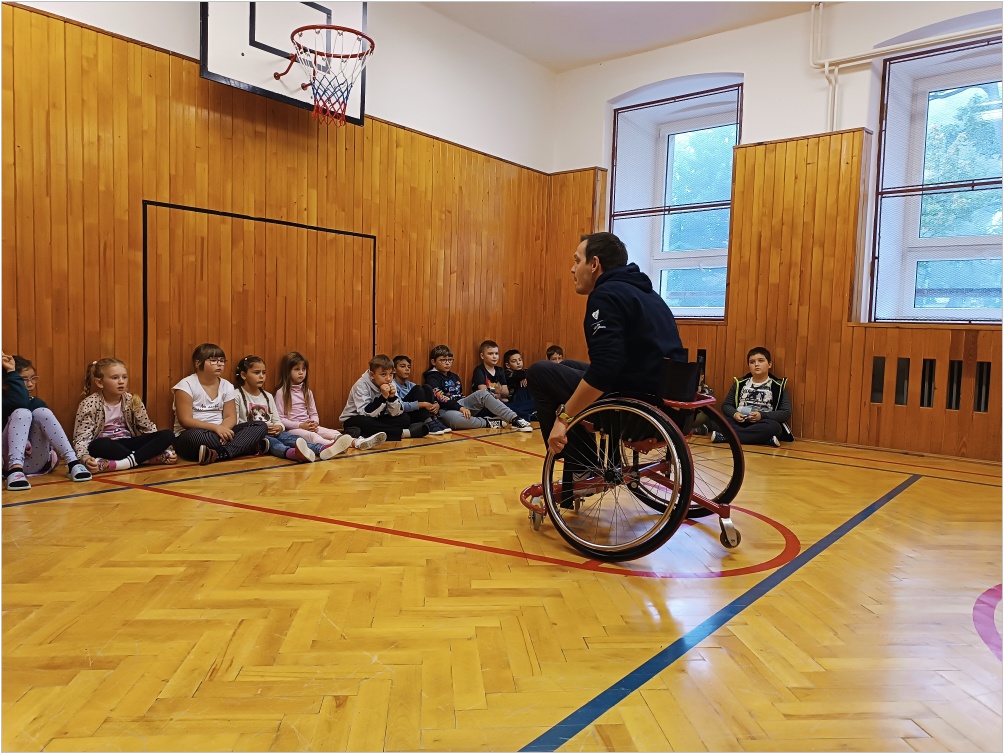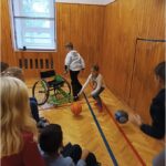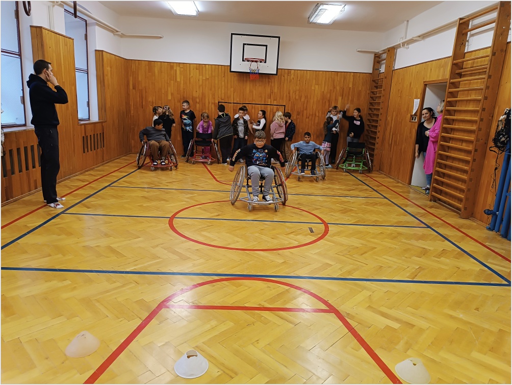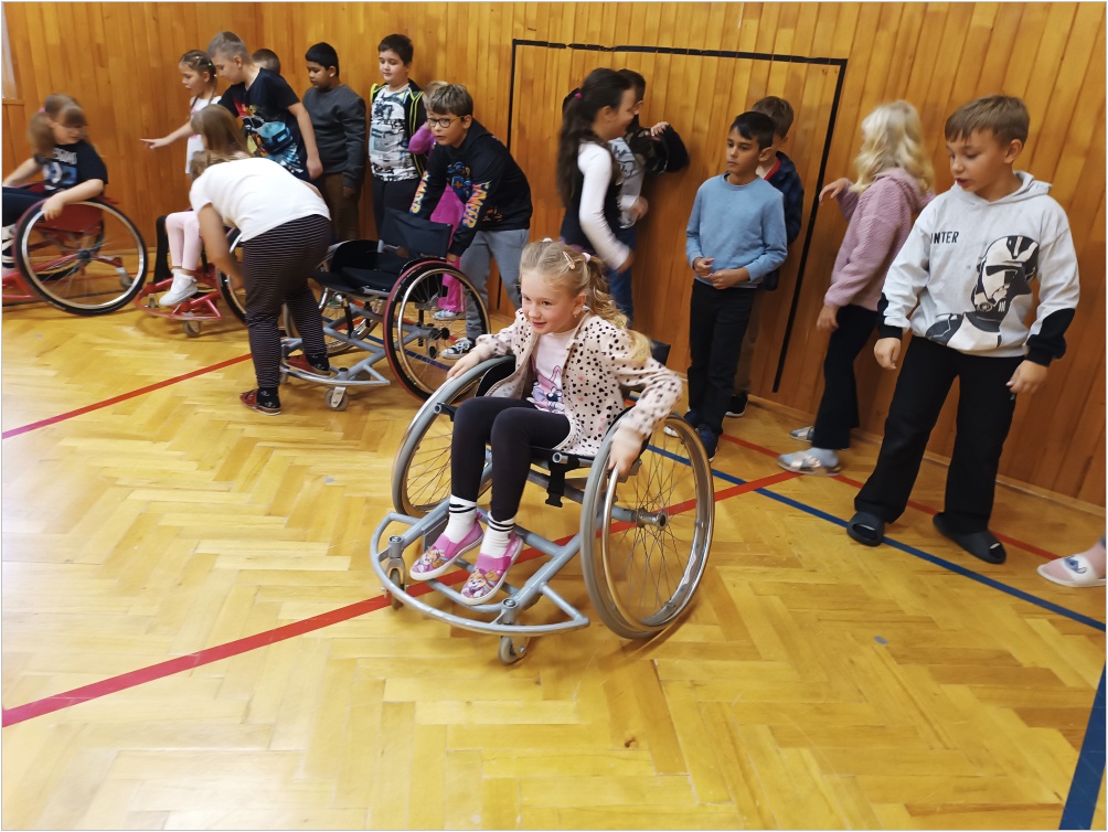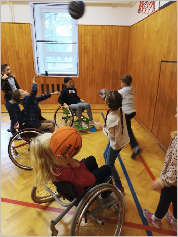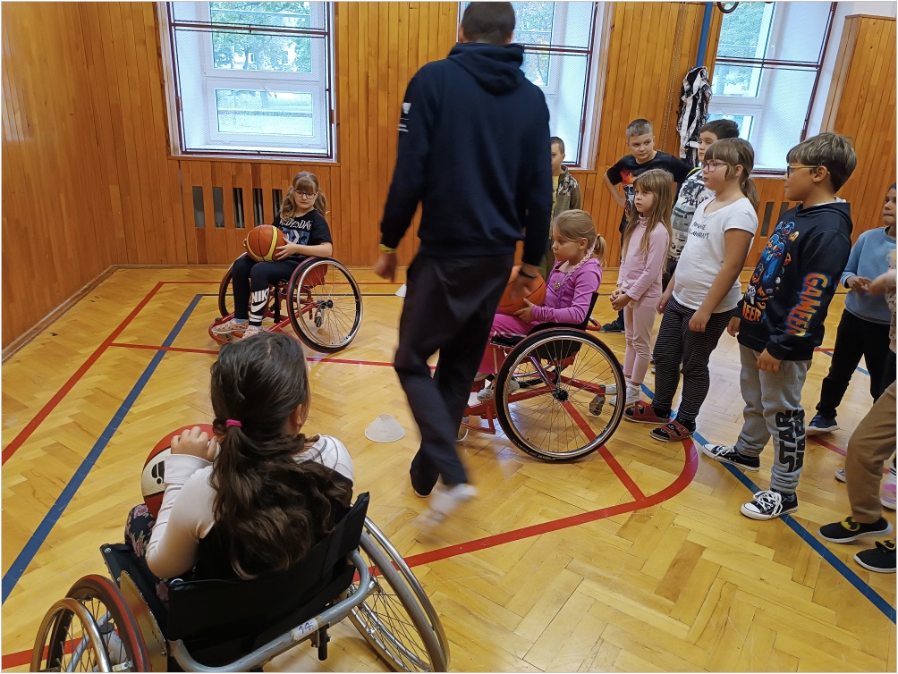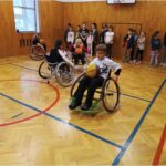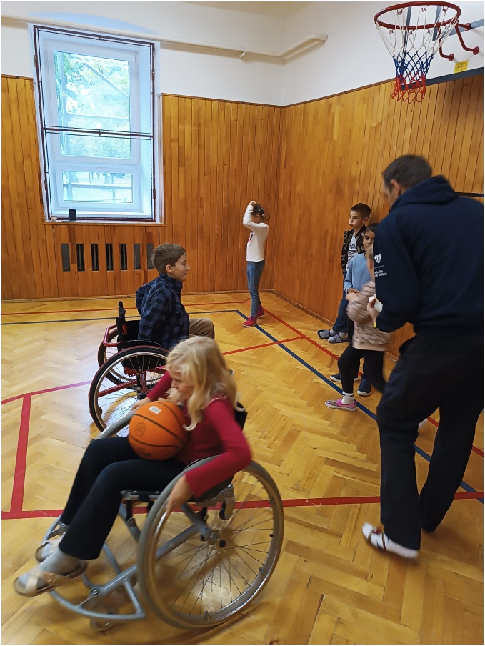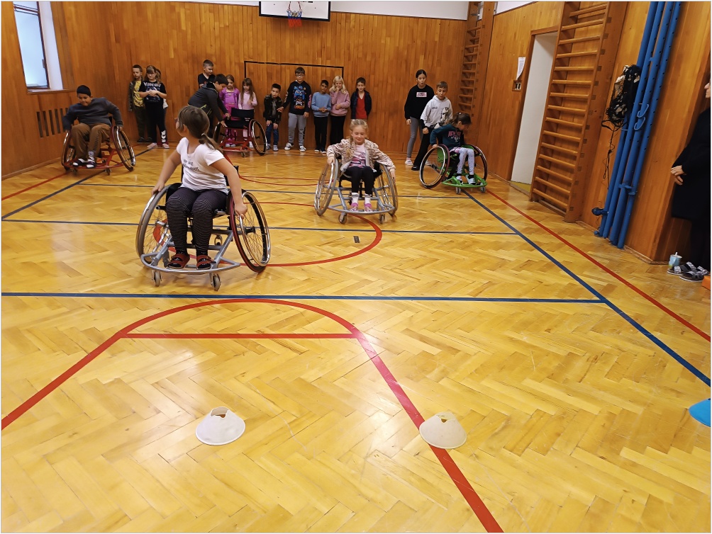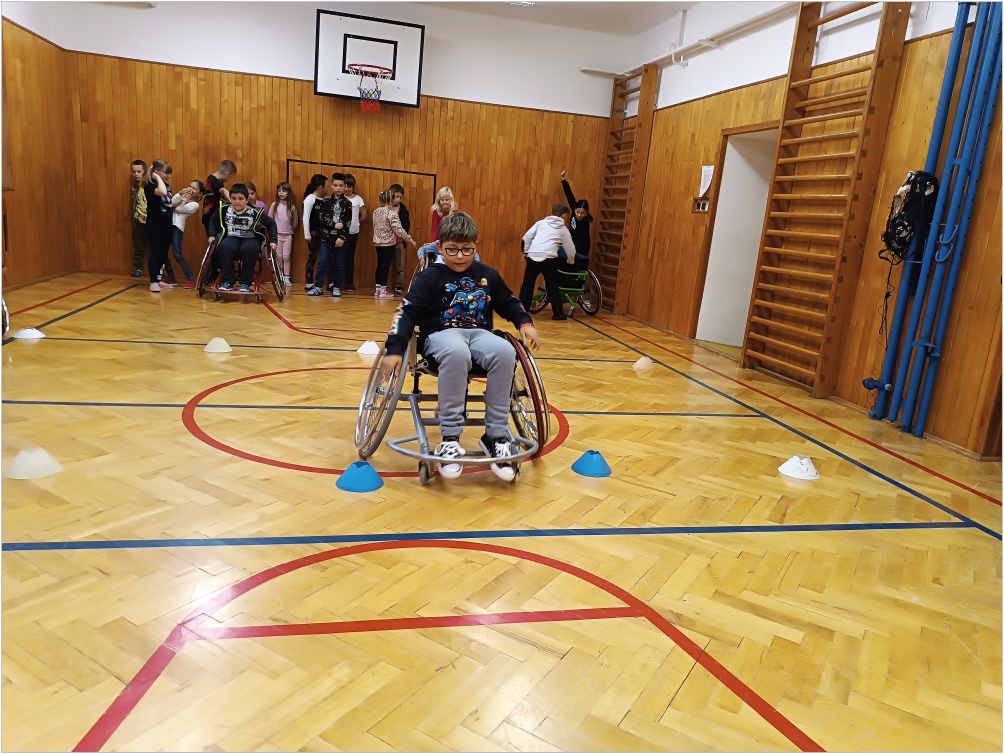 V pondělí nás v MŠ i ZŠ navštívili zástupci z Univerzity Palackého v Olomouci. Žáci základní školy se seznámili s kompenzačními pomůckami, vyzkoušeli si pohyb na vozíčku a dokonce si zahráli basketbal na vozíku. Děti z mateřské školy si procvičily jemnou motoriku při navlékání korálků a zároveň i své hlavičky při počítání a třídění barevných zvířátek do správných mističek. Obě skupiny si dopoledne plné nových zážitků a her velmi užily.