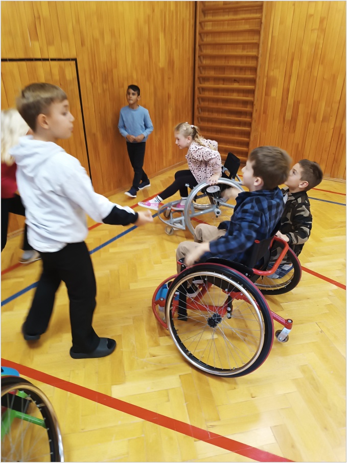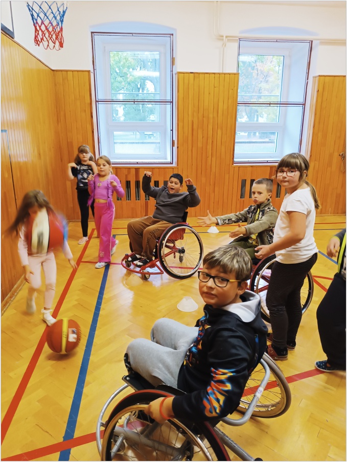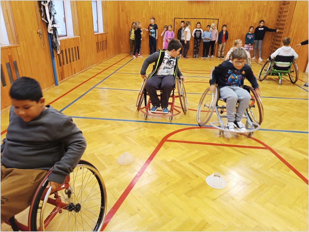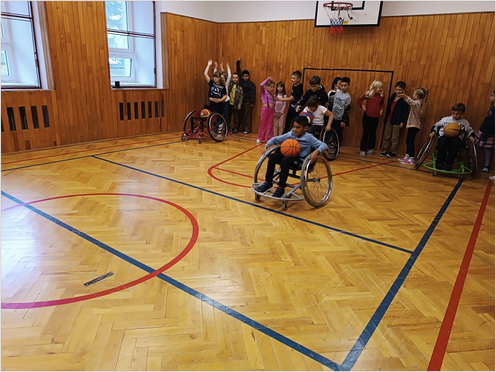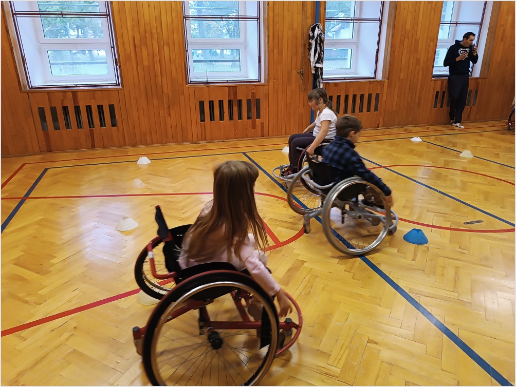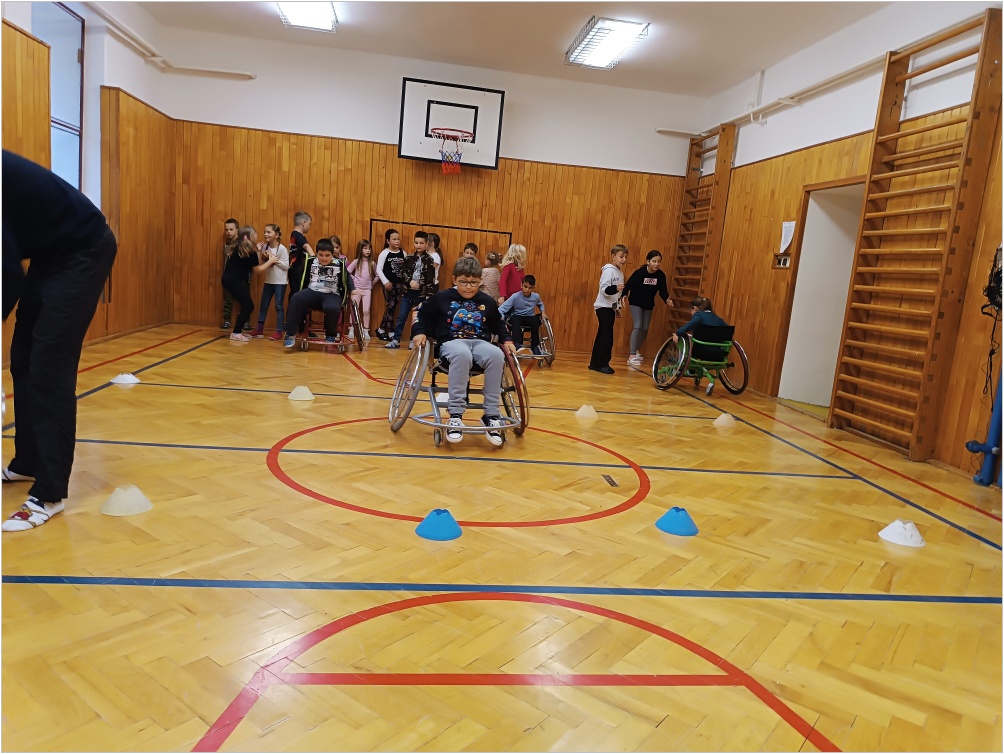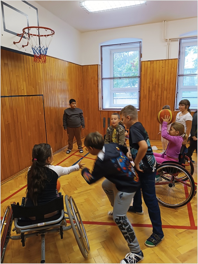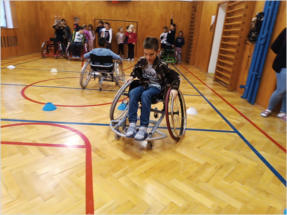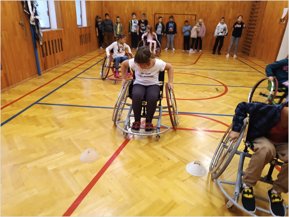 V pondělí nás v MŠ i ZŠ navštívili zástupci z Univerzity Palackého v Olomouci. Žáci základní školy se seznámili s kompenzačními pomůckami, vyzkoušeli si pohyb na vozíčku a dokonce si zahráli basketbal na vozíku. Děti z mateřské školy si procvičily jemnou motoriku při navlékání korálků a zároveň i své hlavičky při počítání a třídění barevných zvířátek do správných mističek. Obě skupiny si dopoledne plné nových zážitků a her velmi užily.