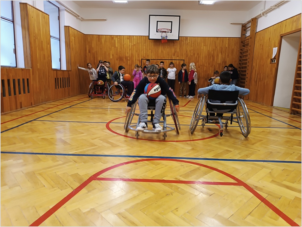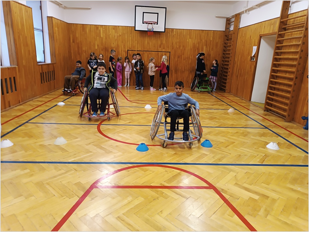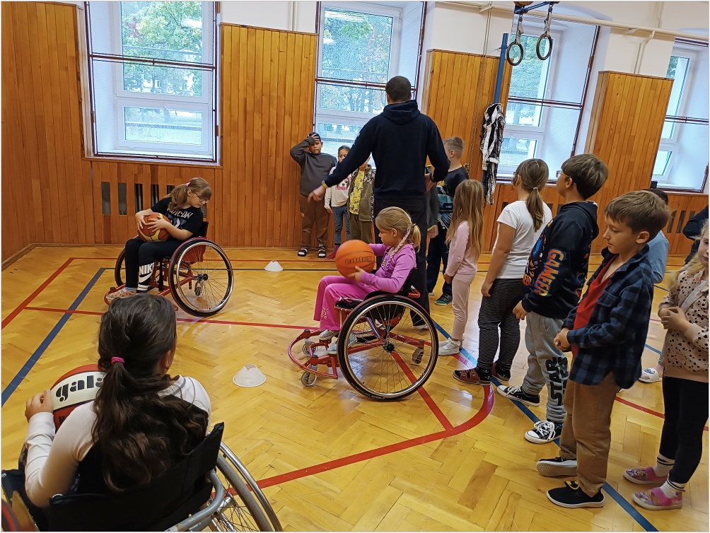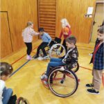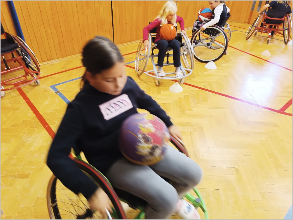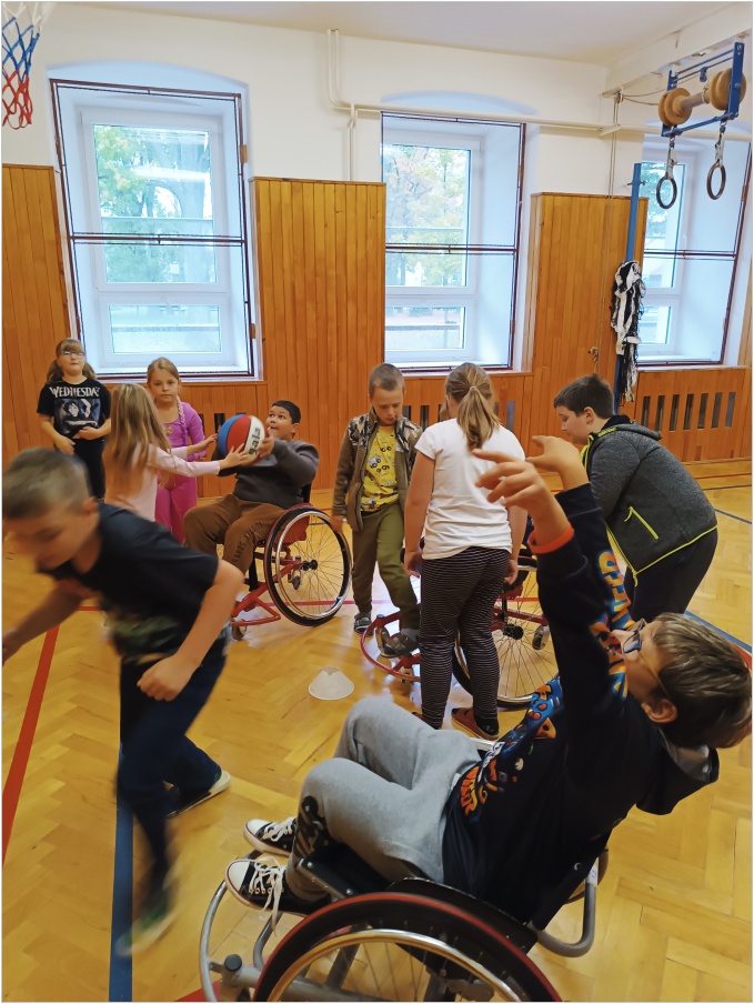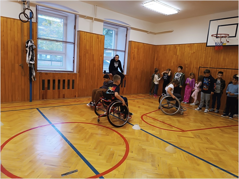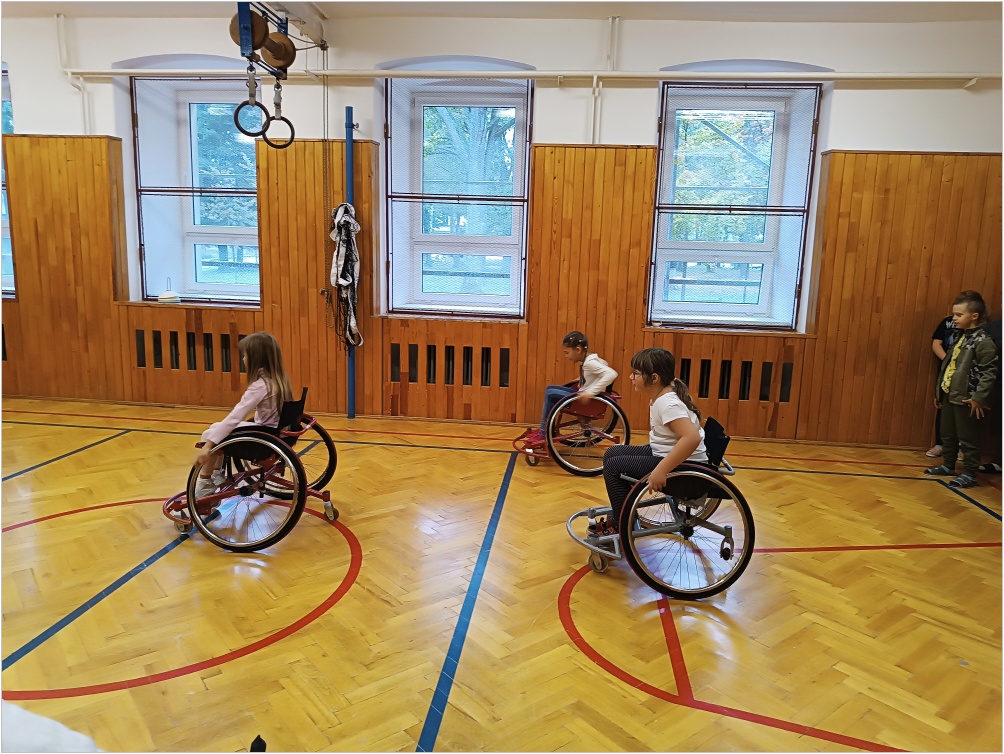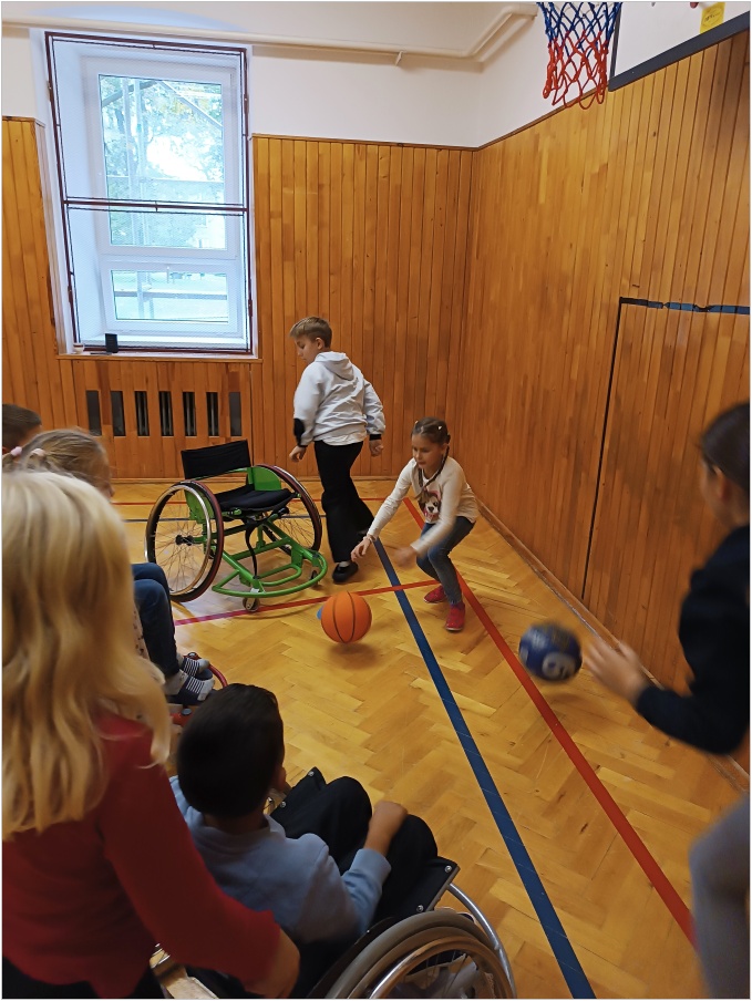 V pondělí nás v MŠ i ZŠ navštívili zástupci z Univerzity Palackého v Olomouci. Žáci základní školy se seznámili s kompenzačními pomůckami, vyzkoušeli si pohyb na vozíčku a dokonce si zahráli basketbal na vozíku. Děti z mateřské školy si procvičily jemnou motoriku při navlékání korálků a zároveň i své hlavičky při počítání a třídění barevných zvířátek do správných mističek. Obě skupiny si dopoledne plné nových zážitků a her velmi užily.