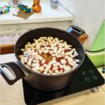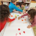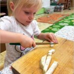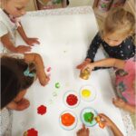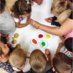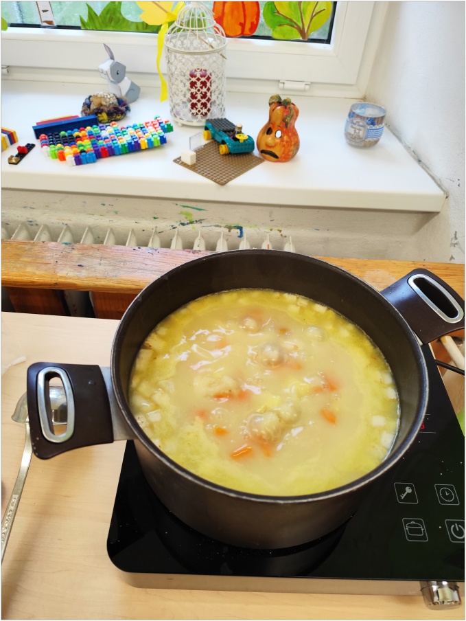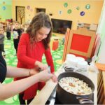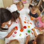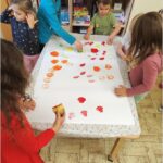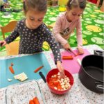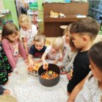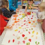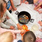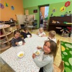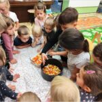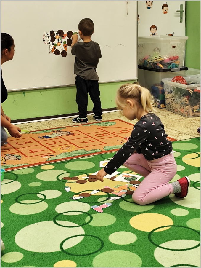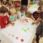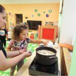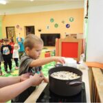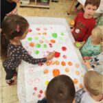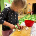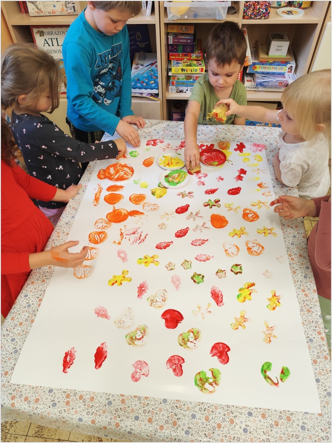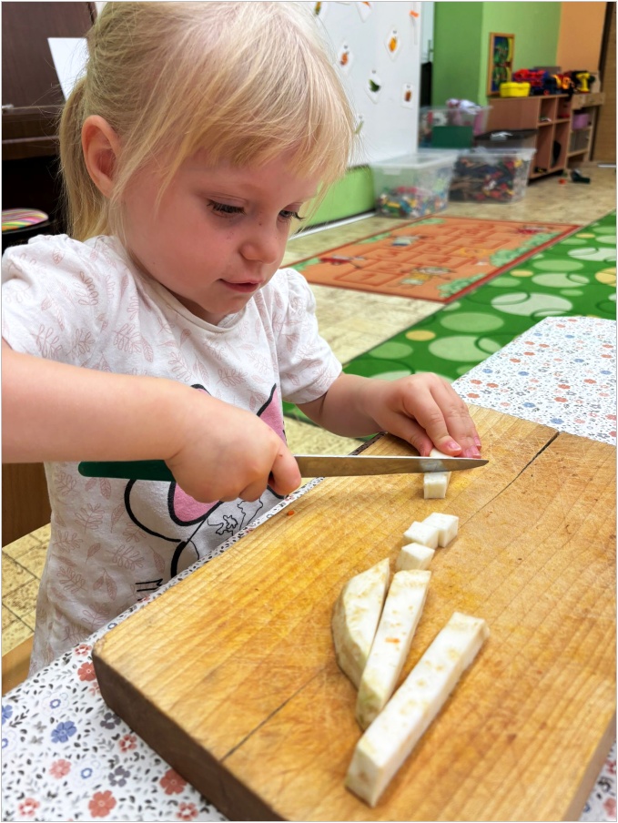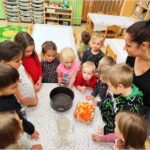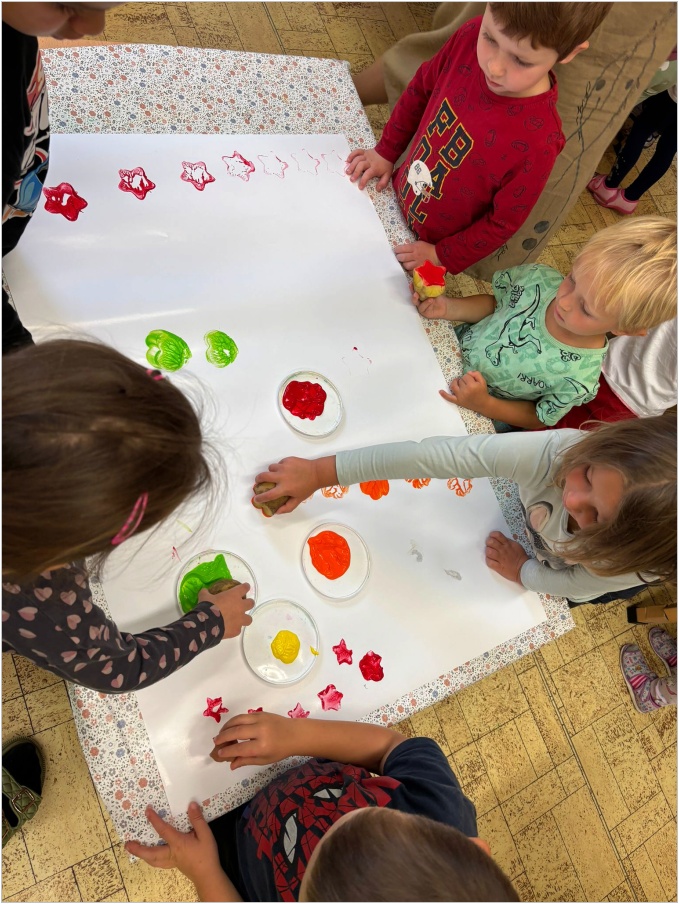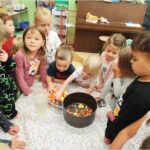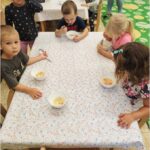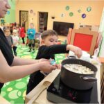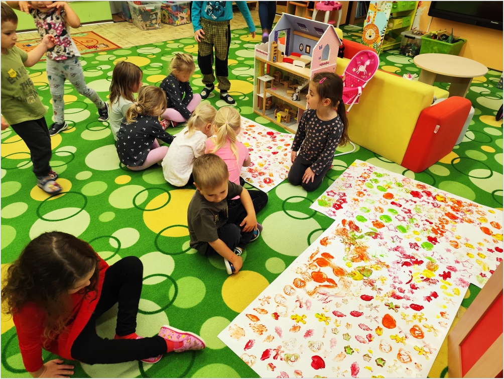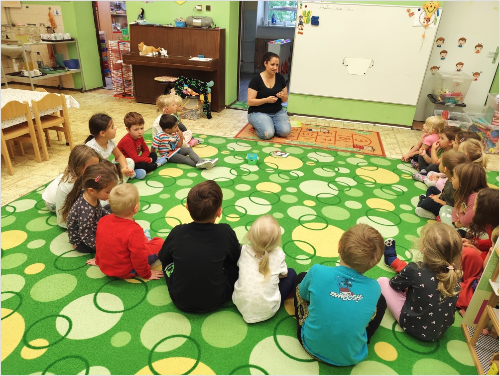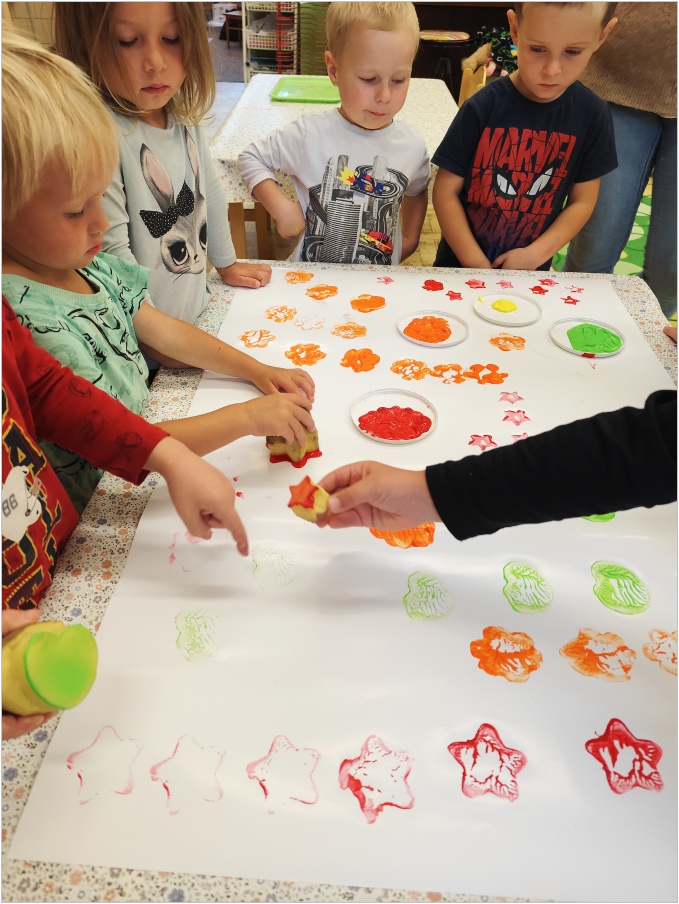 V MŠ se děti seznamovaly s podzimní zeleninou a objevovaly její barvy, tvary a vůně. Společně si ji nakrájely a uvařily z ní výbornou zeleninovou polévku. Než se polévka dovařila, tvořily děti ve skupinkách obrazy pomocí bramborových tiskátek. Zahrály si také veselé hry, při kterých si procvičily barvičky a svou obratnost. Celé dopoledne si všichni moc užili a za odměnu si pochutnali na polévce, která se jim opravdu povedla.