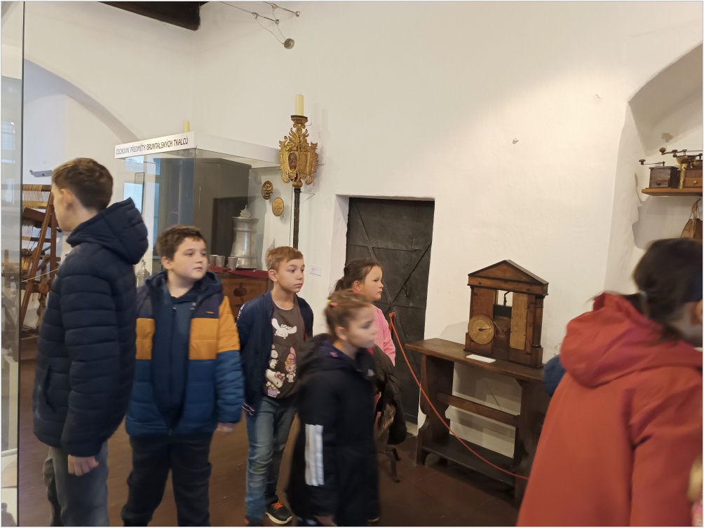 V pátek jsme navštívili s našimi žáky bruntálský zámek. Čekaly nás dva programy. Nejdříve jsme shlédli úžasnou muzejní expozici ,,Řemeslo má zlaté dno“. Žáci viděli, jak to vypadalo u různých řemeslníků, s čím pracovali, jaké byly jejich výrobky. Žáci také hádali, k čemu sloužily různé předměty a pomůcky. Žákům se tato muzejní prohlídka velmi líbila a zajímala je…