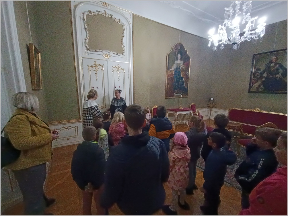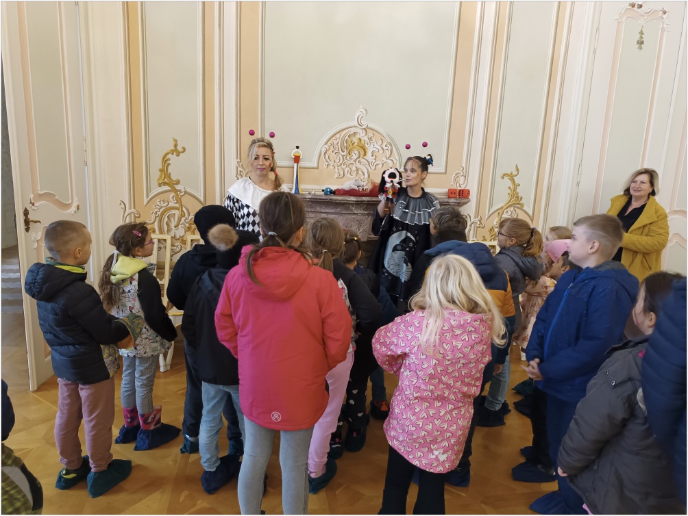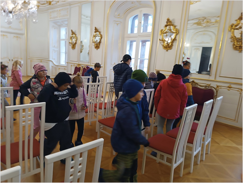No a dalším , co nás na zámku čekalo byla Bambule a Bambule! Dvě legrační postavičky, které našim žákům přiblížily historii krásného bruntálského zámku. Bambule a Bambule dávaly našim dětem spoustu otázek a ty jim velmi úspěšně odpovídaly. Máme šikovné žáky!